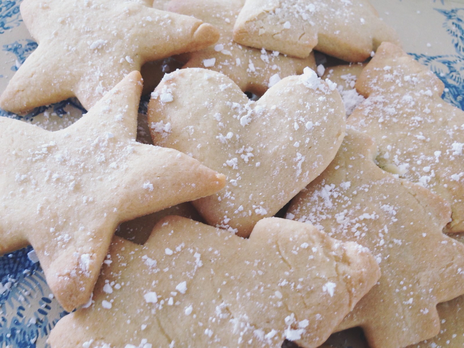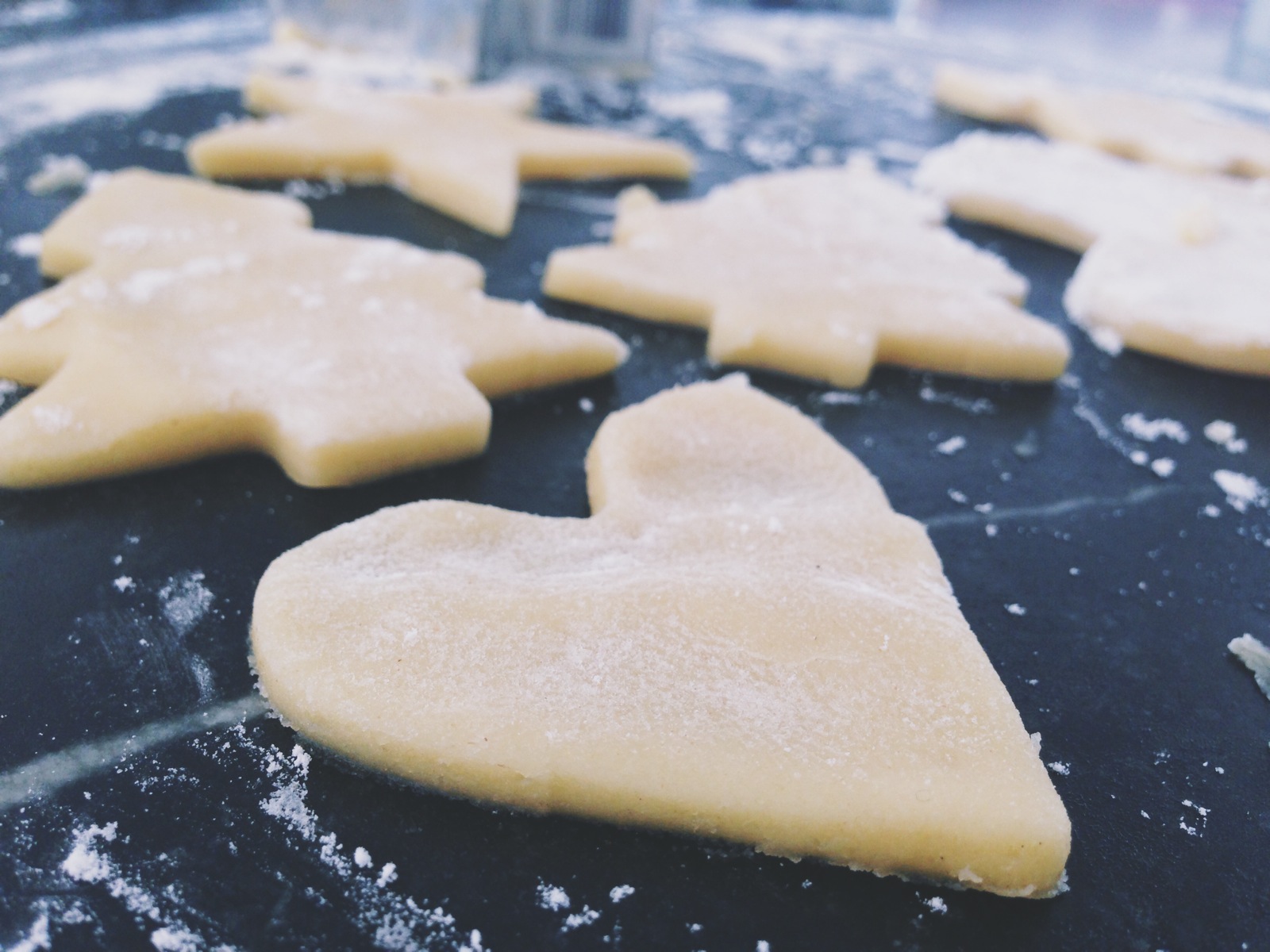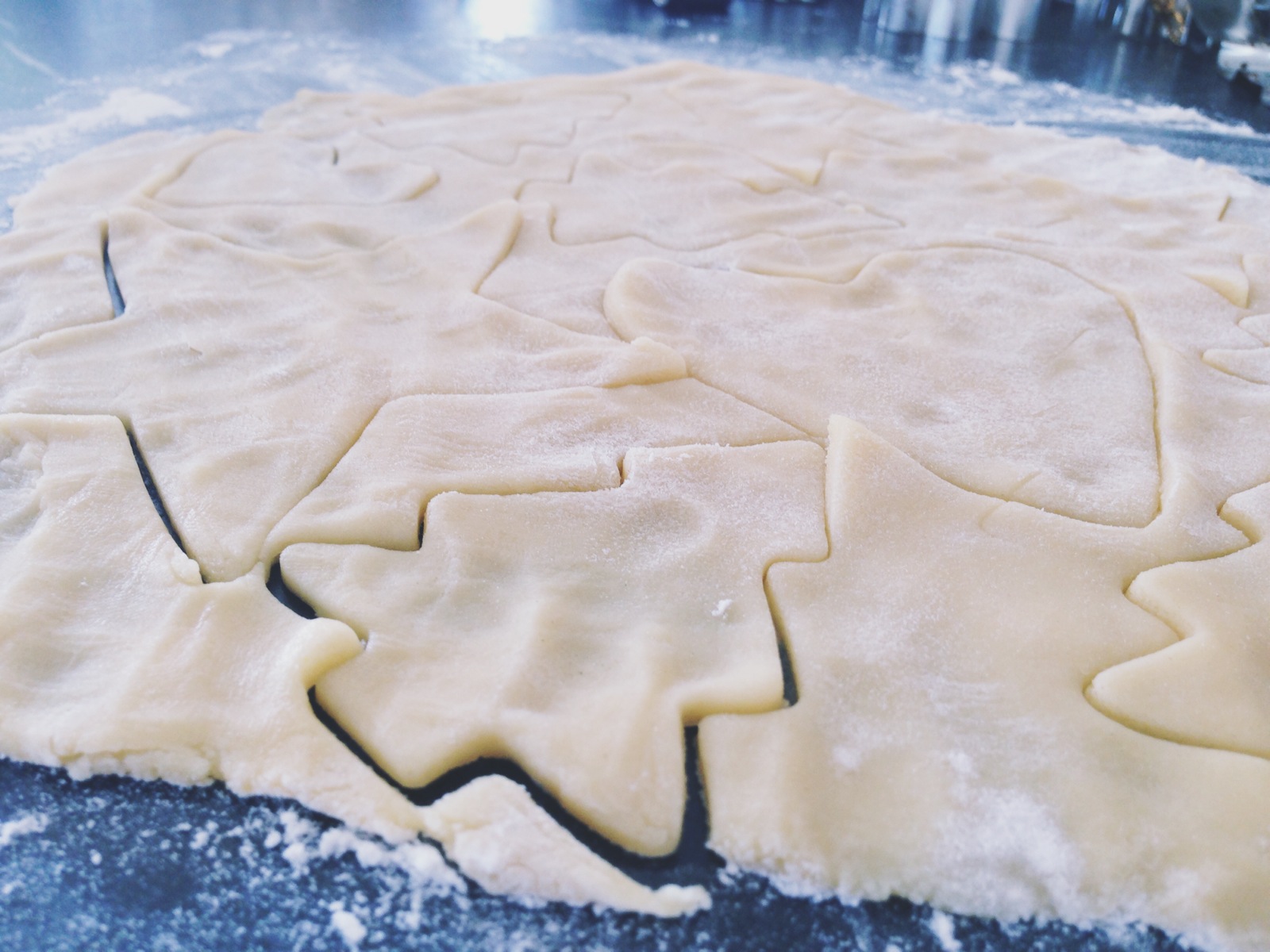 Start by preheating the oven to 350 degrees F. Then, in a medium bowl, stir together the flour, salt, and sugar. photo 3-8Now take your electric mixer and blend together the butter and sugar until fluffy. Crack the eggs in one at a time and then add the vanilla following right afterwards.photo 1-9Gradually add the dry ingredients to the mixing bowl until completely blended.photo 2-9Roll out the dough on a floured surface to keep from sticking.photo 4-8Use your holiday themed cookie cutters to create your desired shapes. I used my Christmas tree shape, stars, and hearts.photo 5-4After filling up all the space in the dough, clump it the scraps together and repeat this step until there is not enough dough to continue. Place the new shapes on an ungreased baking sheet about 2 inches apart from one another.photo 1-10Bake for 8-10 minutes in the preheated oven or until the edges are golden brown. Allow the cookies to cool for about 10 minutes before adding any decorations. I just sprinkled some powdered sugar on top which kind of looked like snow!photo 2-10Finally, enjoy and have a very merry Christmas!